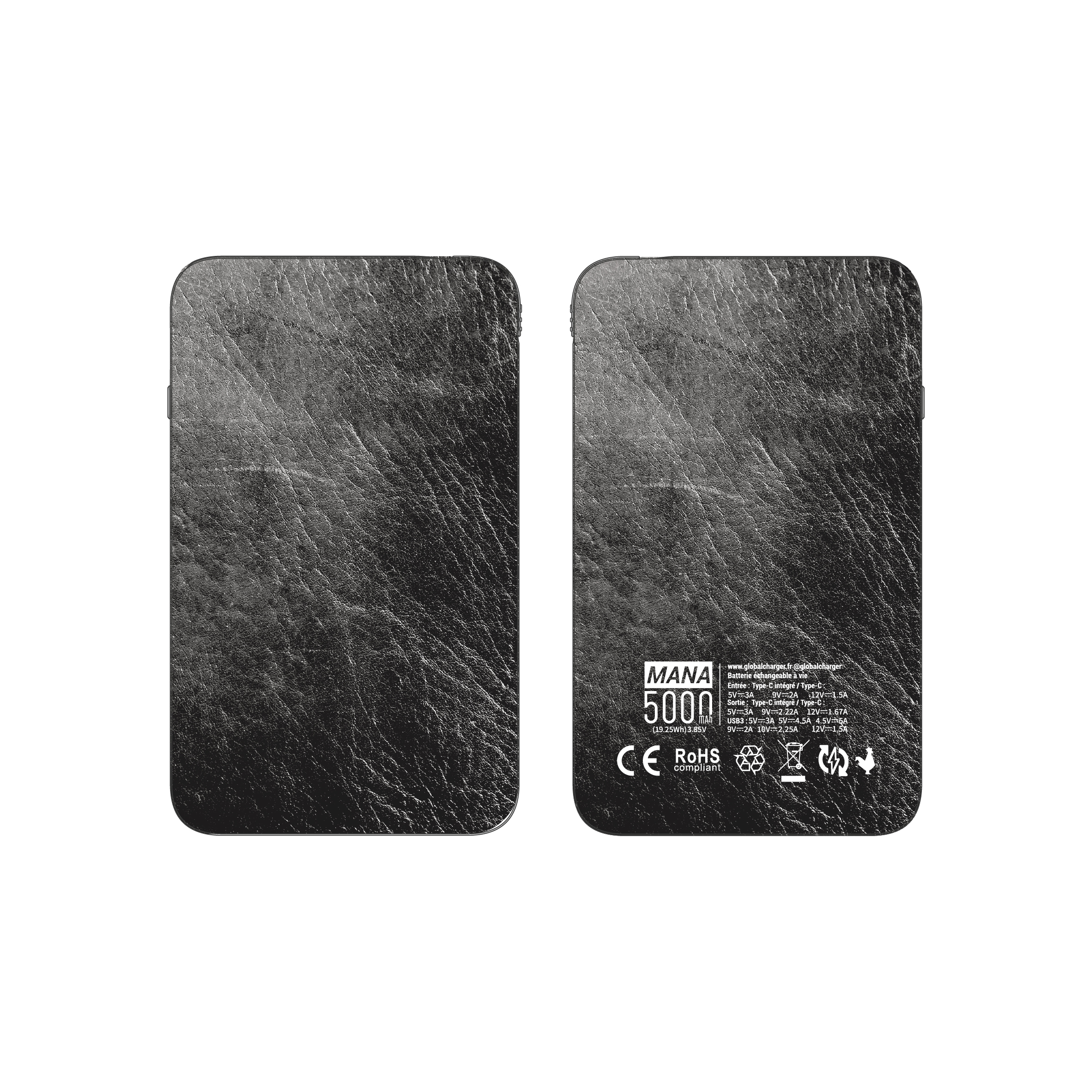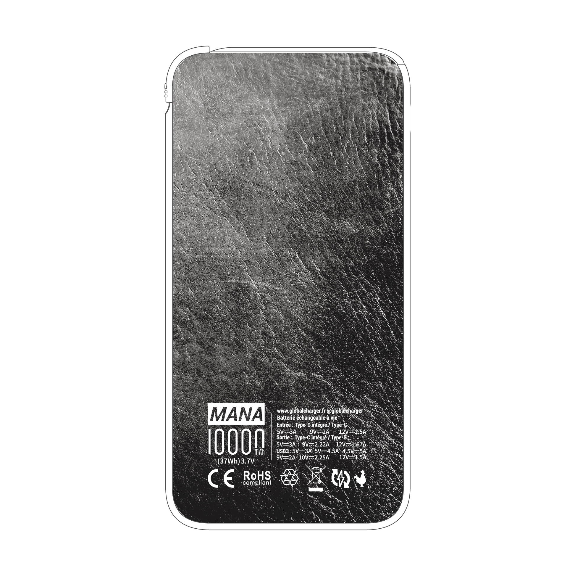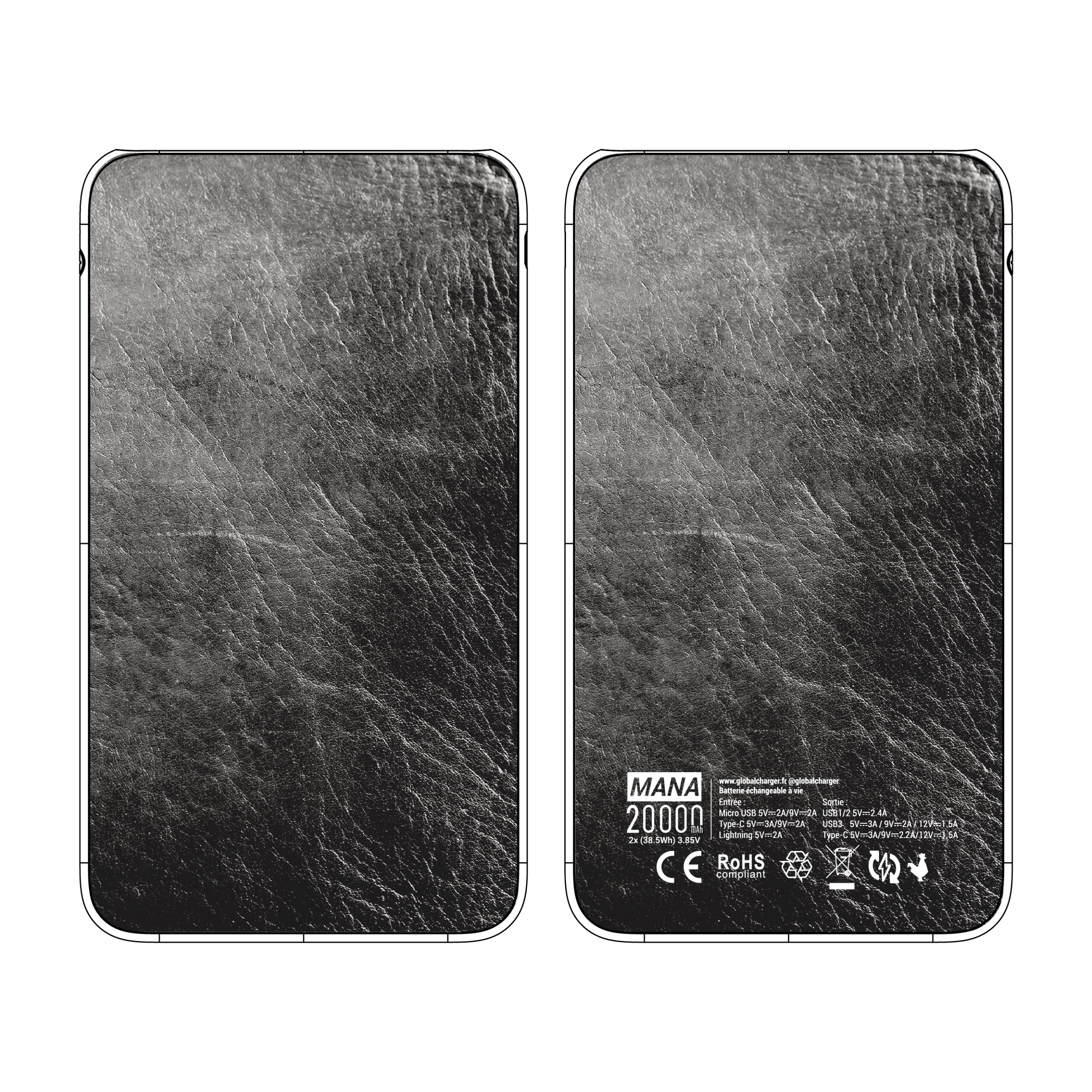Batterie externe MANA Cuir Noir