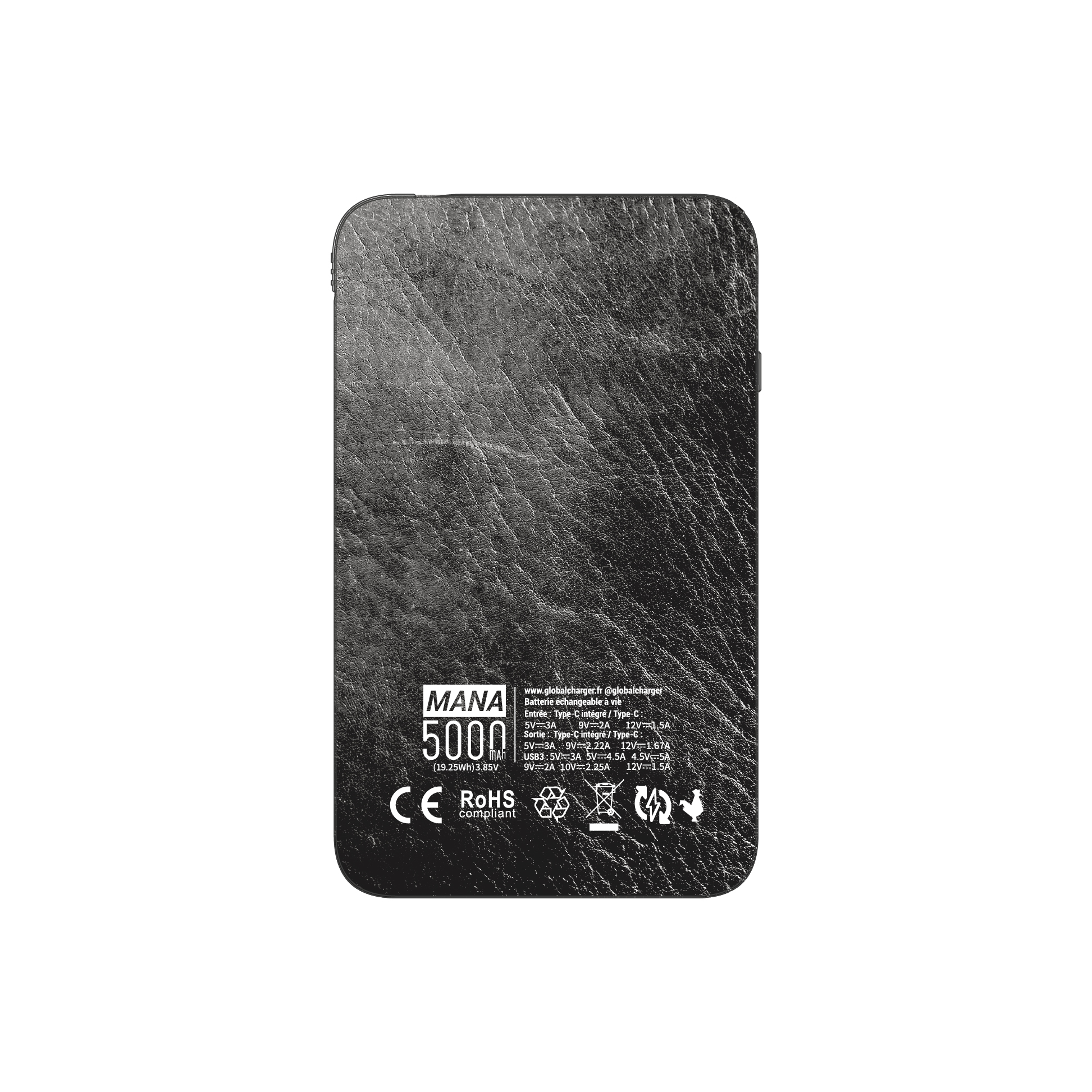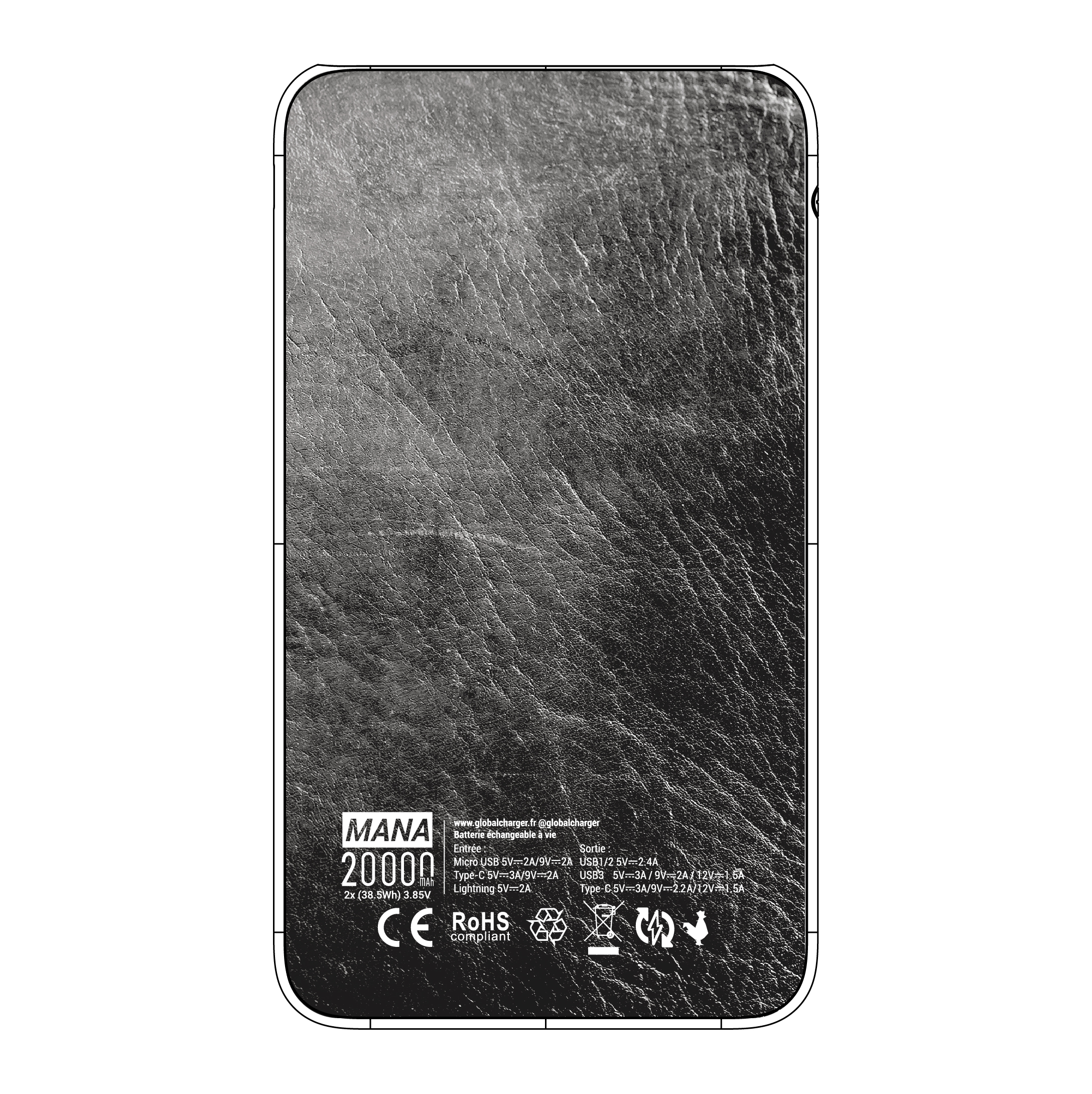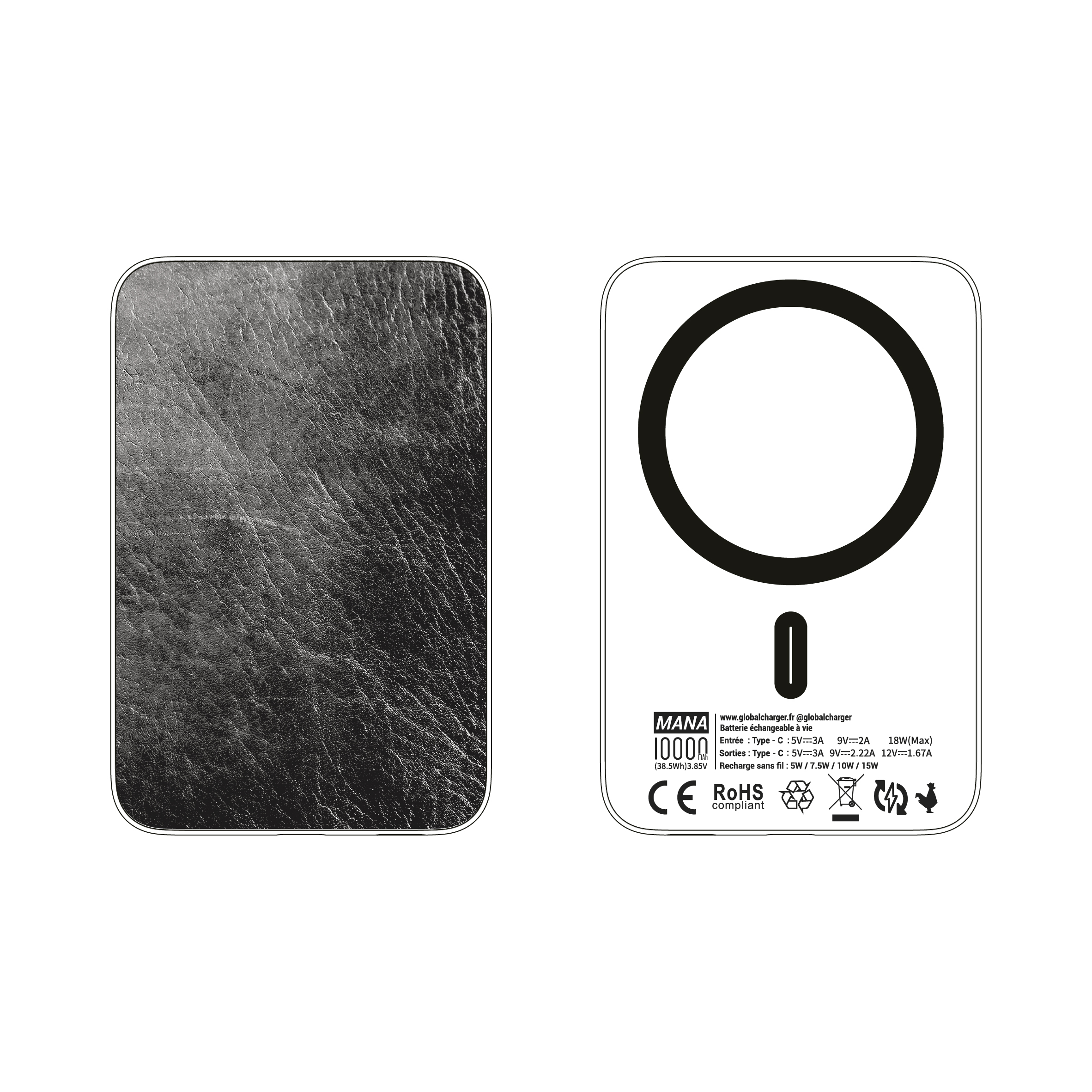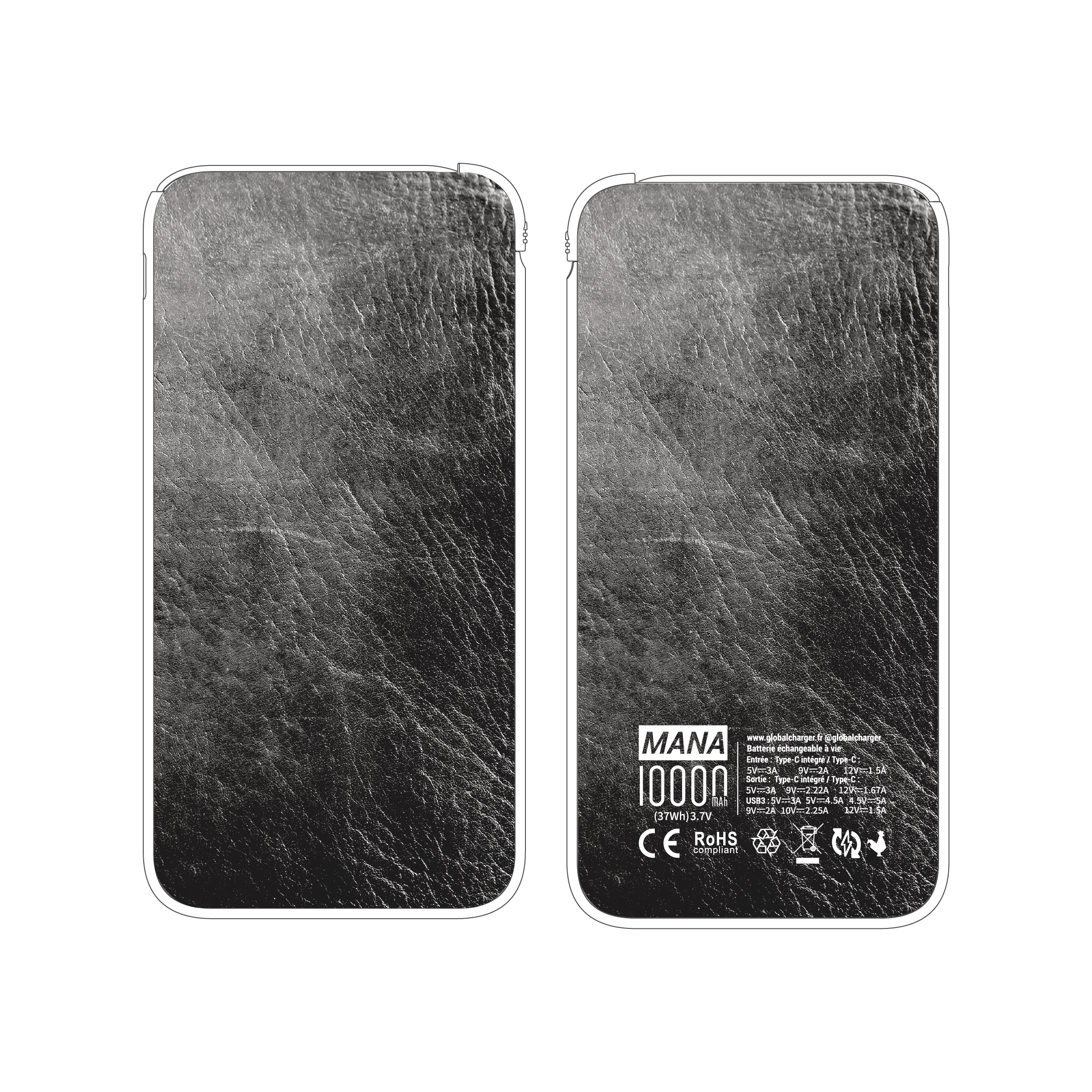 Batterie externe MANA Cuir Noir